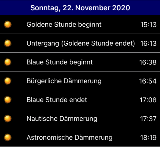 Bei Sonnenuntergängen bieten sich Herbst und Winter an, damit die Sonne hinter den Kränen untergeht. In den Sommermonaten geht die Sonne in Richtung Elbe beziehungsweise noch weiter rechts hinter dem Elbhügel unter, hier bieten sich dann andere Perspektiven an. Um den tagesgenauen Sonnenstand zu ermitteln siehe auch diesen Beitrag.